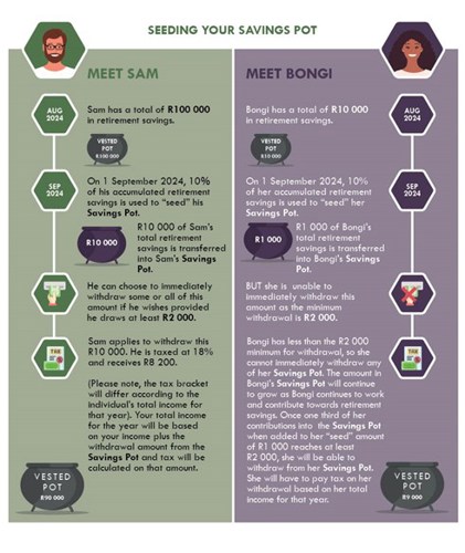 On 1 September 2024 your Savings Pot will be created or seeded using 10% of the funds from your accumulated retirement savings. You can choose to withdraw the money immediately or you can leave it in your Savings Pot in case you have an emergency in the future.